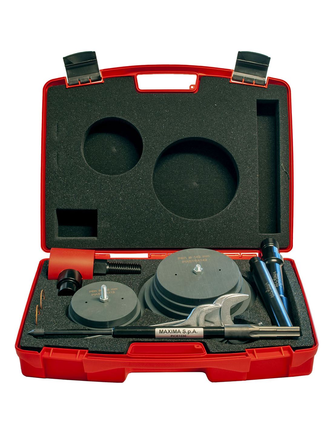 In questa sezione sono rappresentati gli accessori per carotaggio come punte di centraggio, adattatori di varie tipologie così come prolunghe e adattatori per montare gli utensili diamantati Maxima sulla maggior parte delle macchine in commercio.