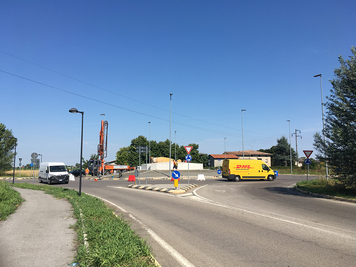 Sono ripresi i lavori per la realizzazione del secondo e ultimo stralcio della Rotonda di Sant’Anna, situata sulla confluenza tra via Romana (SP358), via Val d’Enza (SP111) e via Matteotti, nel comune di Poviglio. Il progetto prevede la sistemazione e l’allestimento completo, con la sponsorizzazione di Maxima.